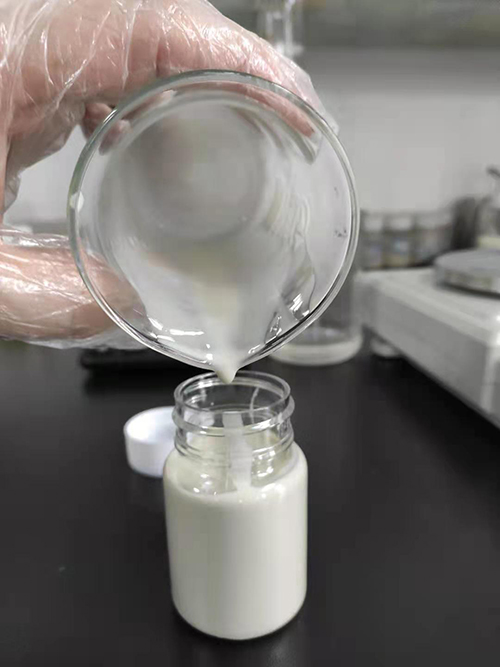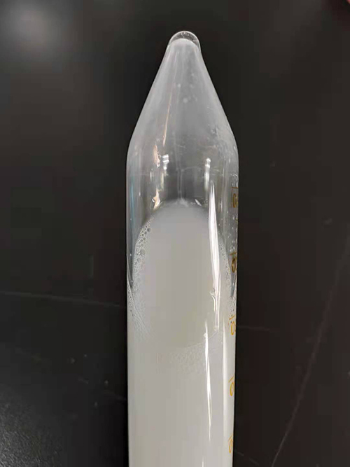 由于甲維鹽的獨特理化性質,甲維鹽單劑及其復配做成懸浮劑,甲維鹽含量在3%以下相對簡單,但甲維鹽含量超過3%,在加工過程中容易出現砂磨膏化(如圖1-1)、熱貯析水、結底膏化等現象(如圖1-2、圖1-3)。針對這一問題,我們通過對分散劑、潤濕劑進行大量試驗篩選,研發出一款針對甲維鹽及其復配制劑的專用助劑,牌號KY-SC15J,可解決此類問題,且助劑成本低、制劑穩定性好。