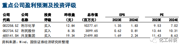 建議關注具有技術優勢的普通草銨膦企業以及布局L-高絲氨酸法精草銨膦的企業。1)利爾化學:現有精草銨膦產能2.3萬噸/年,另有13萬噸/年擬在建產能,產能規模全球最大,建設進度領先行業,且同時掌握生物酶催化法和L-高絲氨酸法,終端市場布局較早。2)利民股份:氣相連續法生產普通草銨膦具有技術優勢,1萬噸/年精草銨膦一期項目預計年內投產。3)興發集團:子公司規劃了5萬噸/年L-高絲氨酸法精草銨膦產能。