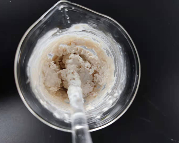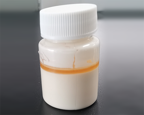 高含量懸浮劑普遍存在物料混合時(shí)粘度大、無法砂磨(圖1-1),制劑粘度大、熱貯結(jié)底、膏化(圖1-2)等問題。由于吡蟲啉水溶性較好,600g/L吡蟲啉SC更容易產(chǎn)生絮凝、聚結(jié)和出現(xiàn)奧氏熟化,最終導(dǎo)致制劑結(jié)底。針對(duì)這一問題,我們通過對(duì)分散劑、潤(rùn)濕劑進(jìn)行大量試驗(yàn)篩選,研發(fā)出一款通用性助劑,牌號(hào)KY-SC177,搭配助劑D107使用,可解決此類問題,且助劑成本低、制劑穩(wěn)定性好。